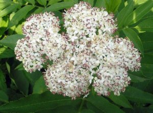 Ez a bokor, a fekete bodza. Nagy bokor, sok-sok virággal, vagy ősszel ernyő szerű termésekkel.